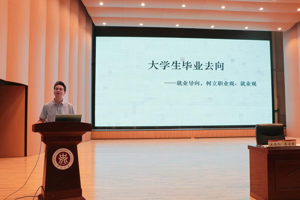 高宏图副书记重点从毕业生就业去向和家校协同共育两个方面与家长进行了分享。首先,他着重介绍了当前毕业生主要的就业去向,并建议家长和学生要以就业为导向,从新生入校一开始就树立起正确的职业观就业观;接下来,他希望家长要做学生的人生导师,帮助学生自我认知、自我分析,找到适合学生自己的路,尤其要注重学生的心理健康;高宏图副书记还结合自己丰富的学生工作经验与家长就教育共识、扭转错误、尊重孩子、耐心倾听、适当容错五个方面进行交流,并提出了“六个鼓励”;最后,他将2024级新生班主任及朋辈导师、导航学长向家长们做了全面介绍。