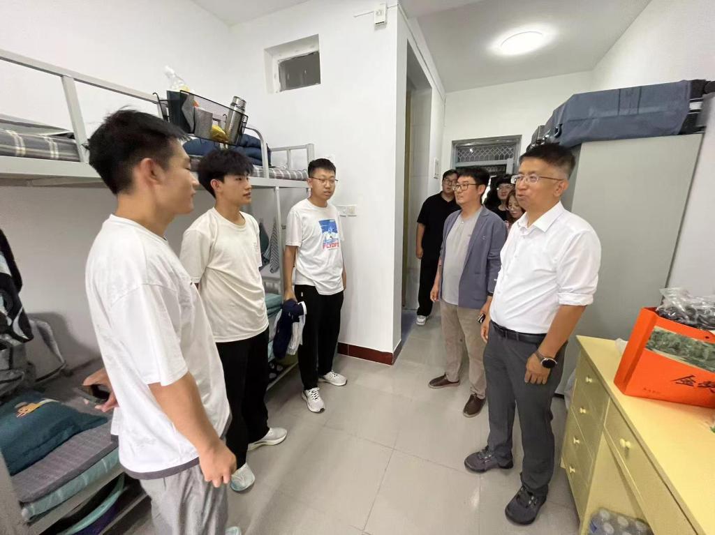 院党委副书记高宏图热心询问新同学们在住宿生活中遇到的问题和困难,并现场进行指导解决,对于不能及时解决的问题都叮嘱工作人员认真做好记录和跟踪协调。热情交流中,他引导新同学要珍惜缘分,珍惜同学情,在集体生活中更好地学会理解包容、换位思考、互相帮助,处理好人际关系,用心深交好朋友,在帮助他人、奉献个人中收获快乐、幸福和人生价值。同时,他重点强调安全问题,包括宿舍安全、财产安全、人身安全、交通安全等多方面,耐心引导教育。他希望同学们把宿舍当成自己的小家,共同营造安全、和谐、温馨的学习生活环境,为大学生活奠定良好的基础。高宏图副书记还重点看望了与学长学姐共住的新生同学,逐一进行交流,表达深切关怀。