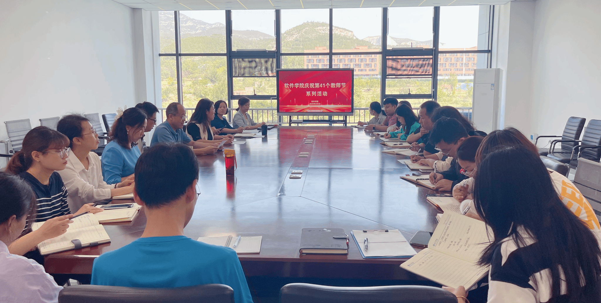 在336会议室举行庆祝第41个教师节系列活动。彩票平台党委书记常旭青主持会议,院领导、各系主任、近三年新入职的教师参加。