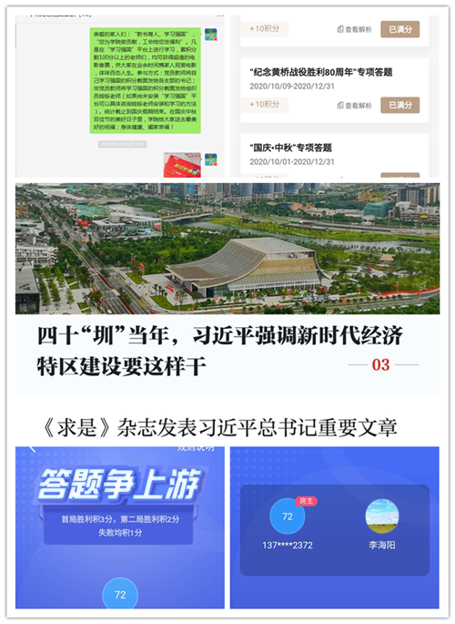 彩票平台教工们积极参加工会组织的本次活动, “国庆•中秋”、“第三届数字中国建设峰会”、“学习贯彻习近平总书记在深圳经济特区建立40周年庆祝大会上的讲话精神”专项答题、新添加的“争上游答题”、“双人对战”更提升了老师们学习参与的积极性。全院形成了比学赶帮超的浓厚的学习氛围。大家都反映通过学习强国的学习,增强了理论素养,加强了对时事政策的了解,“学习强国”充实了每天的学习和工作。