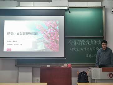 在11310H教室为研究生举办了本学期第一场俊彦讲坛,辅导员魏跃亲老师主持了活动。