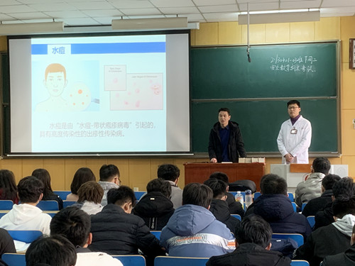 在前期开展常见传染病健康知识讲座的基础上,再次邀请校医院赵海滨医生在11号教学楼11309H教室和11212H教室为我院水痘病例扩大密接学生开展了连续两场水痘预防知识专题健康教育讲座,院党委副书记高宏图出席并做动员讲话。