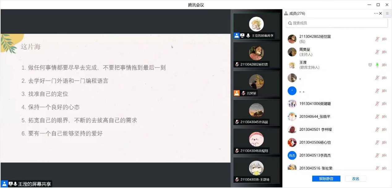 活动结束后,同学们对就业、保研、考研三方面都有了更深刻的了解与认识。至此,本次“榜样的力量”系列线上分享活动取得圆满成功!相信同学们能够以优秀的学长学姐们为榜样,勇敢自信,找到自己今后前进的方向与动力,把握机遇,珍惜当下,不负热血不负卿。这次山海,会有不一样的风景,愿同学们有美好的未来!