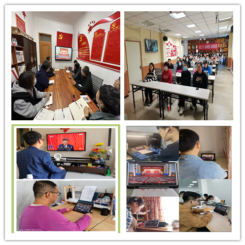 党委根据实际情况积极组织其他师生党员、发展对象、入党积极分子分别在实验室、宿舍等收听收看了直播,其余师生居家依托各类视频软件学习会议精神。
