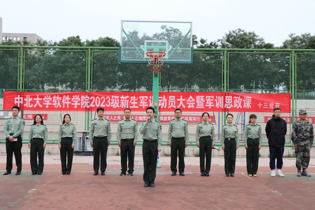 2023级新生军训动员大会暨军训思政课在东区篮球场举行。彩票平台党委副书记兼十三营营长高宏图,十三营全体政治指导员、连长、2023级全体本科生参加大会。大会由学生科科长栾飞主持。