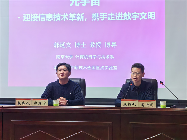 承办的中北大讲堂在瑾瑜国际会议中心学术报告厅顺利举办。本次中北大讲堂特别邀请南京大学教授、博导郭延文为我校师生带来主题为“元宇宙:迎接信息技术革新,携手走进数字文明”的精彩报告。彩票平台党委副书记高宏图主持报告。