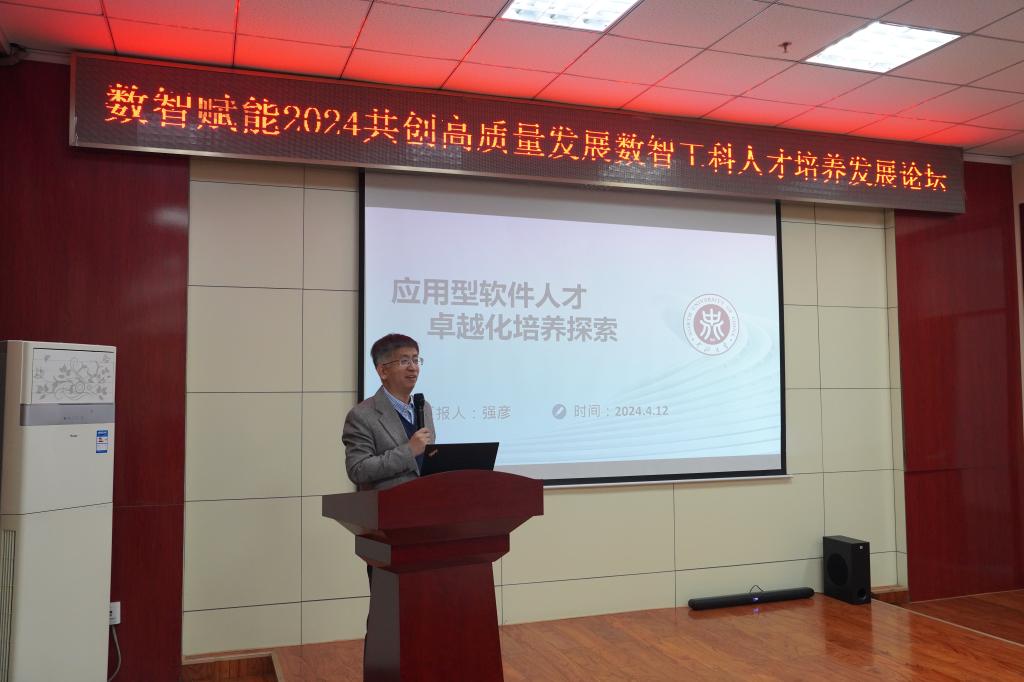 院长强彦受邀在该论坛作了“应用型软件人才卓越化培养探索”的主题报告。在报告中,强院长分析了应用型软件人才卓越化培养的本质内涵;阐述了发挥软件工程专业特色和人工智能技术优势,“以练为中心”,加速课程数字改革,突出编程能力培养的具体方案,并展示了彩票平台的实践成果;基于深化产教融合模式,强化实践培养体系,对建设分段分类递进式校企深度融合的实践培养体系,实现高质量就业进行了展望。