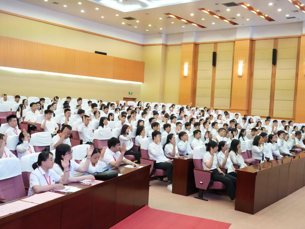2024年6月1日下午,图书馆五层学术报告厅党旗飘扬,党徽闪耀,中共彩票平台