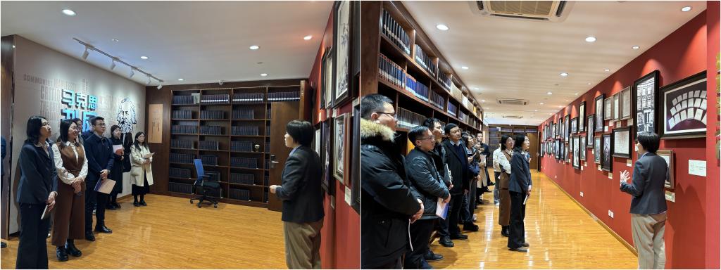 在马克思书房内,全体参会人员认真聆听了工作人员对马克思生平事迹的讲解,参观了马克思生平图片展示区、马克思著作藏书区以及当代马克思主义传播展示区。通过一幅幅油画、一张张照片和一部部著作,成员们深深沉浸在马克思为追求真理和实现人类解放而奋斗的波澜壮阔的一生中,深刻领悟了马克思理论经久不衰、永葆青春的生命力。