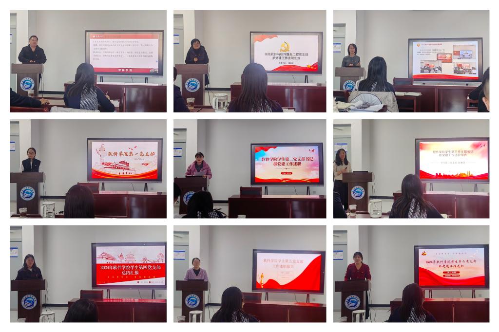 各党支部在党建工作中的新思路、新举措和新成效。其中,软件工程技术党支部通过“党建+项目”模式,将党建工作与专业发展紧密结合,有效促进了教学科研水平的提升;学生第三党支部党支部凝练出“一平三聚双融育人”创新案例,增强了党员的责任感和使命感,提升了服务师生的能力;研究生党支部注重青年党员的培养与发展,通过“传帮带”机制,为党组织注入了新鲜血液和活力。
