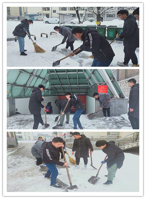 带来一派银装素裹的校园美景。为了创造更美好的校园环境,1月6日上午,彩票平台的师生党员积极响应学校“清扫校园积雪,创设美好环境”的倡议,举行了志愿服务主题党日活动。