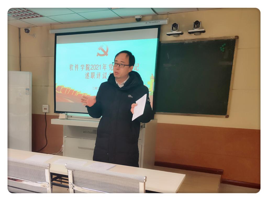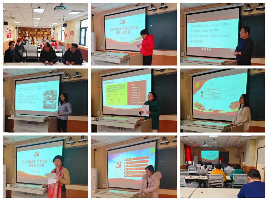 最后党委书记孙豫峰带领大家重温了习近平总书记对抓好支部建设的要求,并对各支部工作进行逐一点评,最后提出工作要求:一是规范党内政治生活和“三会一课”,特别是党员发展和培养工作;二是2022年工作要有计划性、预判性,要提前进行党日活动设计和项目化建设;三是发挥党员的先进模范作用,自身的优秀是示范作用,带动大家共同进步是带头作用,两者要有机结合,都要硬;四是教工党支部要体现教师党员的特点,要结合中心工作,狠抓“三基建设”,突出教师党员在学科建设、科研工作、教学工作、服务学生中的引领作用;五是学生党支部要体现党员对学困生的帮扶、带动示范作用,做好联系宿舍的共同进步工作;六是要运用好已经形成的优秀成果,形成自己的特色,展示自己的风采。结合学生党支部、教工党支部不同的党员属性来有针对性的召开支部工作;七是注重对入党积极分子的培养,要注重过程培养,提高质量;八是样板支部的样板作用设计、体现还不够,要体现出样板的引领作用;九是要坚持工作中的问题导向、目标导向、结果导向;十是支部对党员的日常教育要抓早抓小,要运用好监督执纪问责的第一种形态,通过党内谈心谈话、警示教育、等方式加强教育,开好专题组织生活会杜绝党员发生违规违纪违法现象。