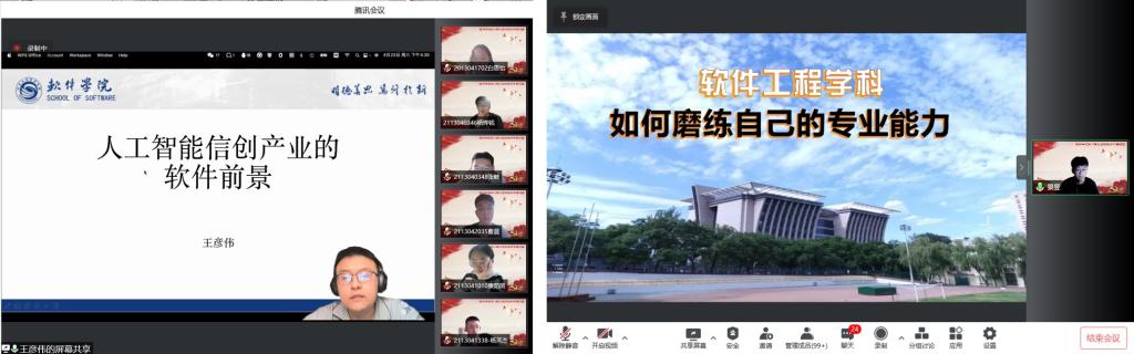专题分享中,彩票平台 优秀学生党员代表王彦伟同志、景昱同志分别以《人工智能信创产业的软件前景》和《软件工程学科如何修炼自己的专业能力》为题,向学员们分享了软件工程专业上的前沿知识及自己的学习经验,带给学员们更好的目标规划和学习上的启发,充分发挥了学生党员的先锋模范和榜样引领作用。
