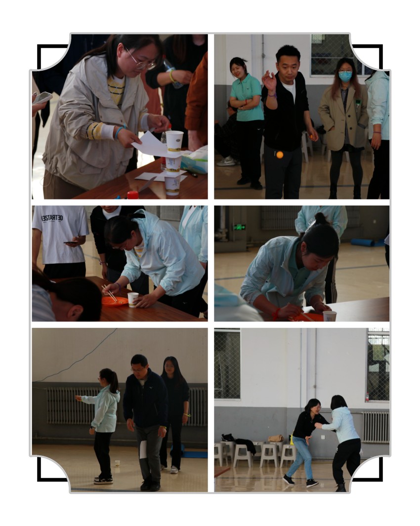 热身游戏击鼓传花,激昂的情绪,热烈的气氛展示了人们积极向上的乐观精神,提高了参与者的敏捷性、反应速度;心有灵犀,考验了老师们的默契与配合;只有细心、沉稳的老师才能又快又好地完成金豆搬家;一击必中,一颗小小的乒乓球给大家带来了笑容与欢乐;正话反说,考验老师们的思维敏捷度与反应能力,以往熟知的词语换一个思维方式变得晦涩;太空漫步的这边顶着纸杯,夹着A4纸的每一位老师,走一步都是谨慎万分,生怕出错,一旦出错,将重新返回起点,旁边观赛的老师们也是紧张地为他们捏了把汗,不时的给出鼓励与建议。