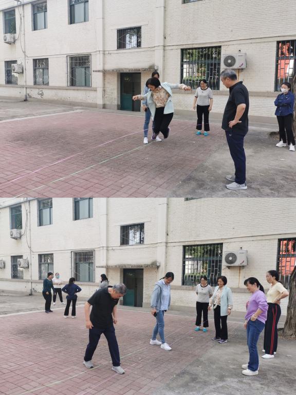 活动现场气氛活跃,欢笑声此起彼伏,老师们纷纷挑选自己感兴趣的运动器材,滚铁环、跳皮筋、跳格子让老师们重新体验了儿时的快乐,有的老师们在一旁踢毽子,大家互相配合、互相帮助,完成了好多高难度的动作。在飞镖场地,老师们争先恐后进行竞技,不仅缓解了工作中的紧张情绪,也在一定程度上放松了眼睛,缓解了眼肌疲劳。