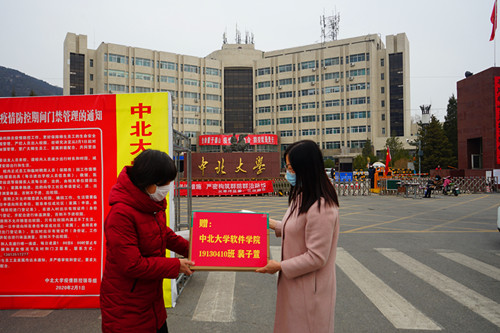 捐赠了50个专业的防护口罩,支援彩票平台在一线工作的教师和部分学生。彩票平台党委副书记杜瑞平接受了家长的捐赠,并将印有学校“致知于行”的纪念优盘赠给家长。