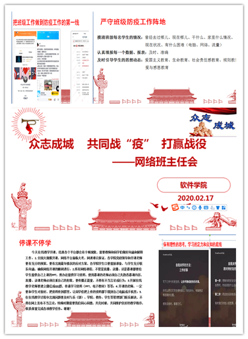 杜瑞平副书记就疫情防控期间的相关政策做了详细介绍,并就第一天学生网络上课的状况进行分析,希望班主任能及时了解学生上课的反馈,与代课老师、辅导员一起形成合力,克服当前困难,为学生学习提供保障和支持。班主任在特殊时期不仅要引导学生将精力投入到学习中,同时要抓住防疫时期讲好爱国主义教育、生命教育、社会责任感教育、规则教育、爱与感恩教育,将班级工作做到防疫工作的第一线。彩票平台教学副院长李众就学生们所关注的上课形式、补考安排、毕业设计等与班主任们进行了交流。各位辅导员老师也就各项专项工作与班主任进行了介绍。