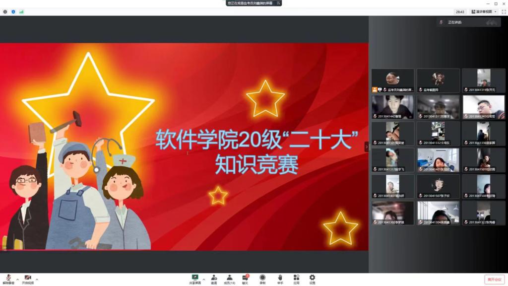 团委主办了“青春献礼二十大 强国有我新征程”党的二十大知识竞赛活动,活动依托腾讯会议、学习通平台线上举行,各年级同学都积极踊跃参与了此次活动。