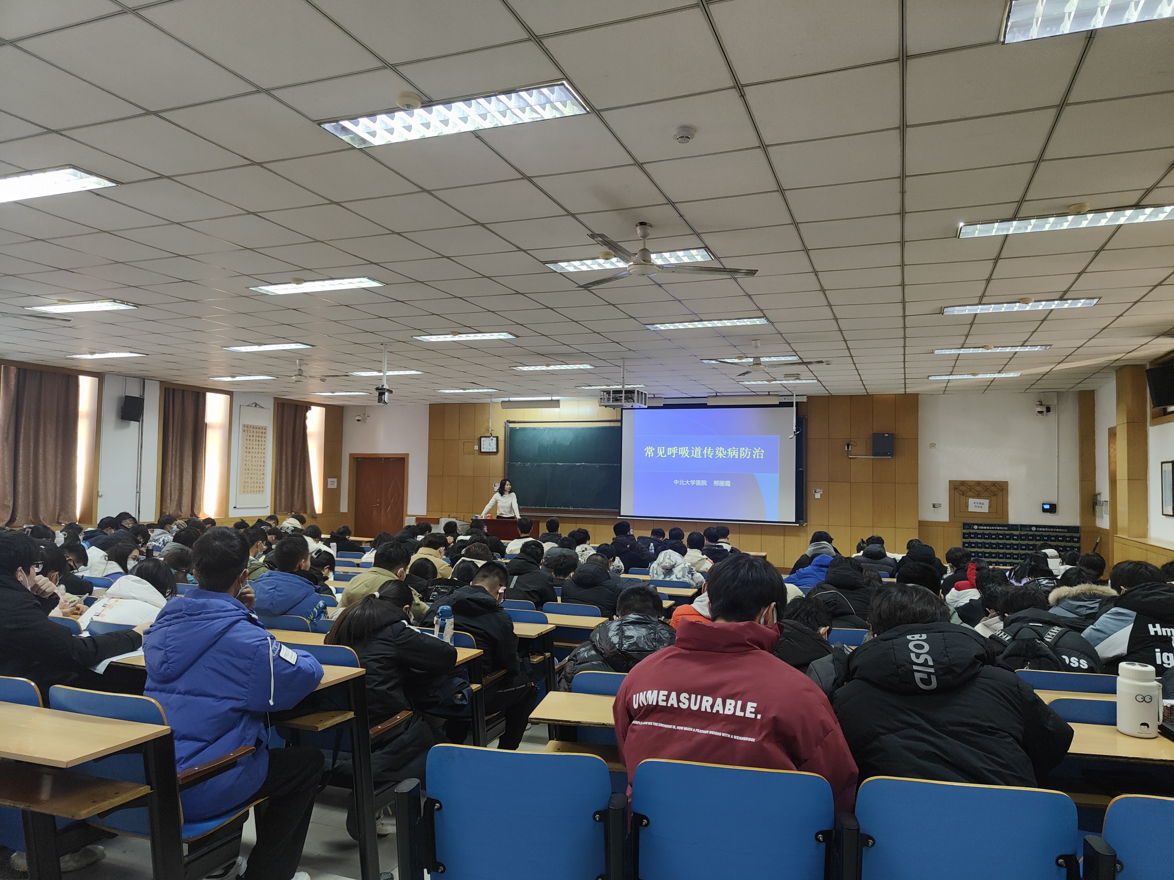 所有学生。校医院邢丽霞,安海琴医生为同学们讲解了传染病产生的原因及分类,并结合近期我校门诊常见支原体肺炎、流感以及近期偶见的水痘、肺结核等呼吸道传染疾病的临床表现、治疗及处理方法系统地进行了讲解。同时也强调预防呼吸道传染病务必多开窗保持空气流通、勤洗手、密集公共场所戴好口罩、加强锻炼增加抵抗力。
