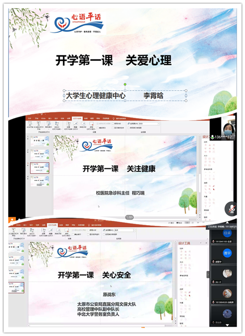 疫情成为常态下,9月开学季如期开启,大学生按照返校计划有序返校,回到熟悉的课堂,开始了新的学期。2020年9月3日晚7点半,心语平话辅导员工作室通过网络会议举办“开学第一课”,启程新学期。