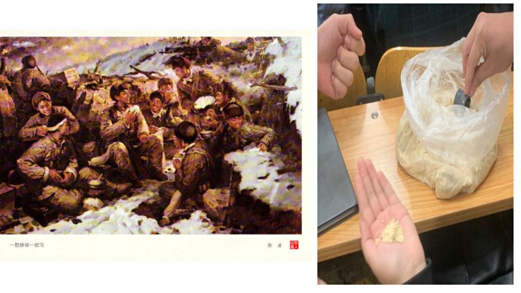 在中国近现代史上,涌现出一大批重要历史人物。他们是特定时代的产物,并以其各自的个性和活动,从不同侧面有力影响了中国的发展进程。赵宇宁、王玮琪、徐家兴、任彪煜、赵渊熙五位同学分别讲述了陈独秀、林祥谦、王近山、许世友、周恩来的伟大故事。通过故事讲述,革命先辈们经血火洗礼、历尽艰险曲折体现得淋漓尽致。分享会中大家尝到了炒面的味道,深切感受到了先辈们“一把炒面一把雪”应付着饥渴和寒冷的不易,正因为有老一辈革命家和那些无私奉献的人们才会有我们今天的美好幸福生活。