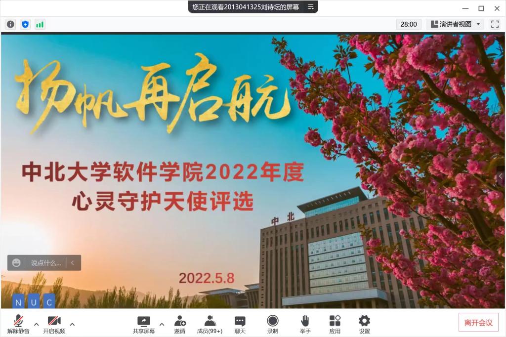 随着“5.25大学生心理健康月”的到来,为肯定彩票平台心理骨干的优秀工作成效,软件彩票平台于20225月8日下午19点以腾讯会议为载体线上举办“十佳心灵守护天使暨优秀工作者”评选活动,彩票平台学生科李晓敏老师、盖海霞老师、董越男老师、王婷婷老师作为评委出席了本次活动19级、20级、21级各班心理联络员,20级参与评选的心灵守护天使亲友团120余名同学参加。