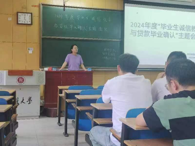 2024年5月23日下午五点开展了毕业生诚信教育。在毕业生诚信教育大会上,辅导员盖海霞根据学生处《关于开展2024年度学生资助诚信教育主题活动的通知》文件内容要求,对20级贷款生毕业确认工作的要点进行了宣传讲解,同时针对贷款注意事项为参会同学们进行问题答疑,引导学生树立诚信还款意识。