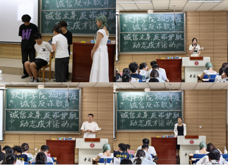 活动特别设置了形式多样的教育环节。由学生自编自演的反诈情景剧《网恋需谨慎》,以生动活泼的形式揭示了网络诈骗的常见套路,赢得现场阵阵掌声。在优秀学生分享环节,第八届勤工助学年度人物邵晨星、阎雯昕同学结合自身经历,分享了勤工助学与学业发展的心得体会;勤工助学队长马飞燕同学则以"诚信立身,感恩践行"为主题,讲述了诚信做人、感恩社会的深刻感悟。