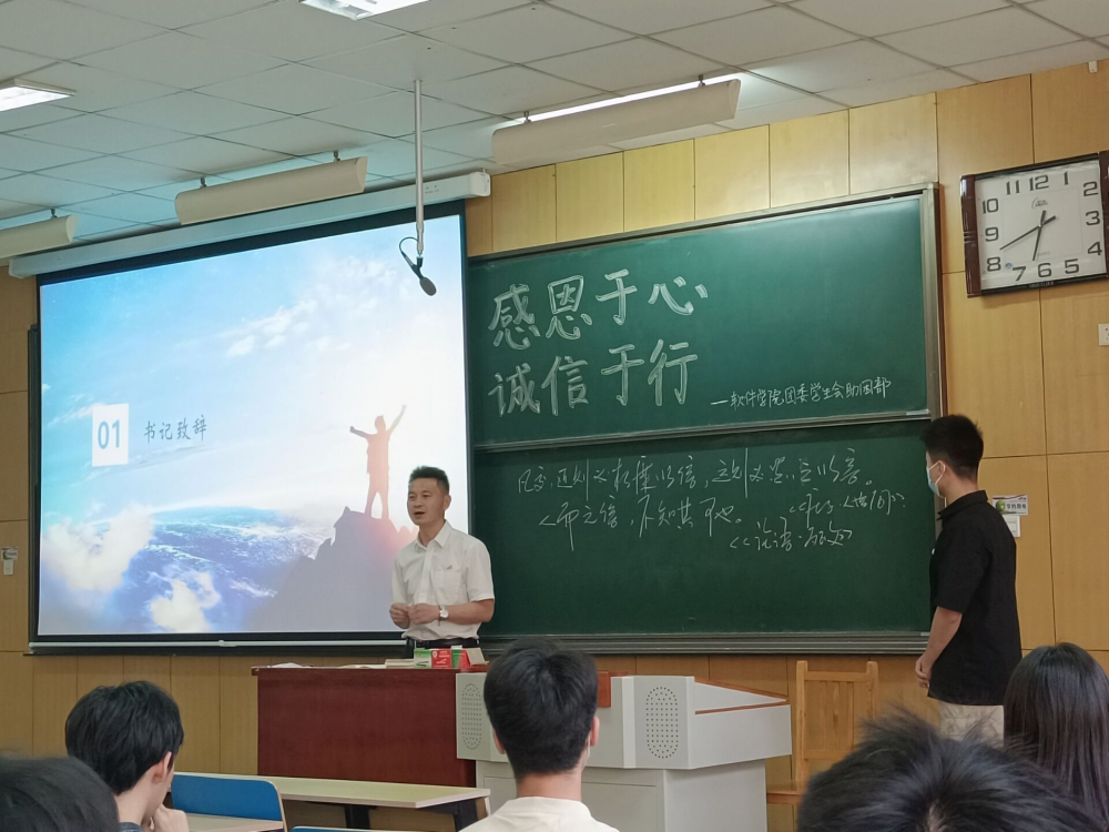 2022年5月31日下午六点半,彩票平台于11309H教室组织开展“感恩于心,诚信于行”资助主题教育活动,2019、2020、2021级各班困难生负责人和班级代表参加会议。在同学们庄严而肃穆的校歌声中,大会拉开序幕。会上彩票平台