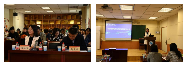 柯晶研究员的报告题目是基于深度学习的临床病理图像诊断分析。她的报告针对癌症病理图像普遍存在数据量大、诊断信息复杂、染色异构、制片易发生瑕疵等问题,基于前期多种不同癌症的临床诊断经验,开展了详细分析阐述,并提出了相应的深度学习框架,以实现临床诊断。两位学者围绕一系列的学术成果、层层递进、逐步展开,参会的师生们在报告后的交流环节也非常热烈。