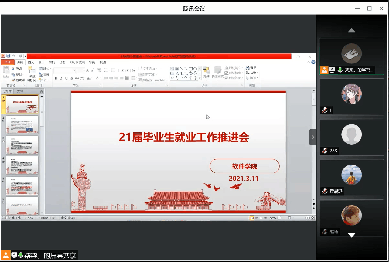 就业指导老师在线上召开21届毕业生就业工作推进会。此次会议中,就业特邀指导乞国钰老师从毕业生形式、就业政策解读、参加双选会等几个方面介绍了现在毕业生就业的严峻形式,为各位将毕业学子敲响了警钟。