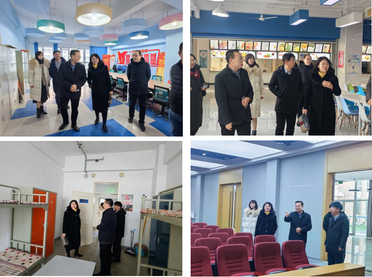 青软集团总裁李战军、副总裁李刚、副总裁丁璟、副总裁高峰以及相关负责人热烈欢迎,一起陪同参观了基地的实训教学环境,生活环境及党建室等。