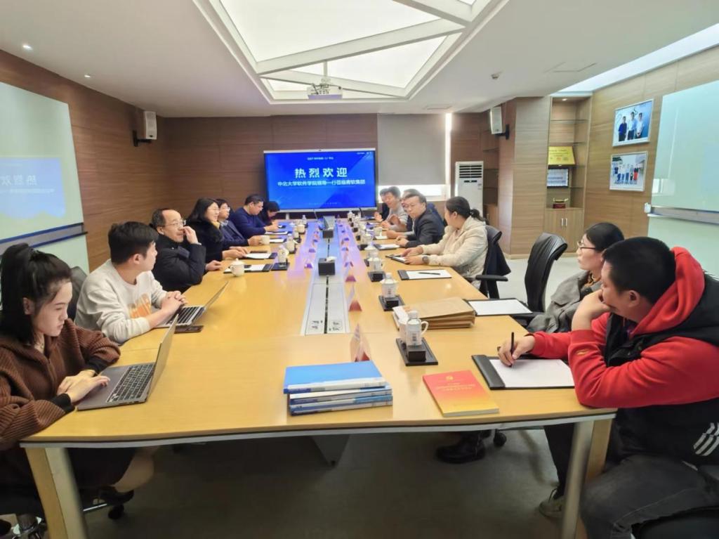 一行在青软集团副总裁丁璟的带领下,参观了解了青软集团产教融合的业务模式、国产化信创特色教学产品及解决方案、数字化平台在高校人才培养及产业人才服务中的应用场景等。强彦院长对数据大屏展示部分内容进行了细致了解;在和其他高校专业共建合作模式上,青软全程参与高校四年人才培养过程,并采用「六共同六融合」的校企合作理念给教学赋能,领导们给以极高评价。